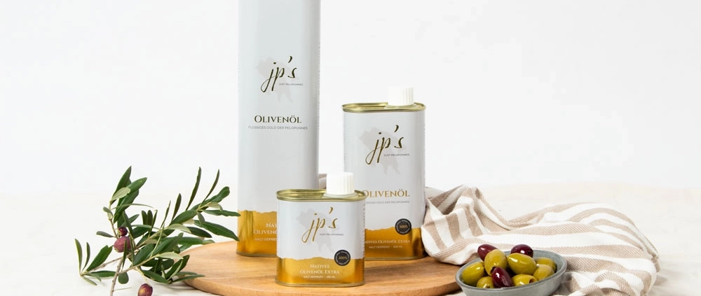 Gesundheitsvorteile von hochwertigem Olivenöl: Person hält eine Schale mit Oliven und Olivenöl in der Hand, dazu Brot und frische Olivenzweige.