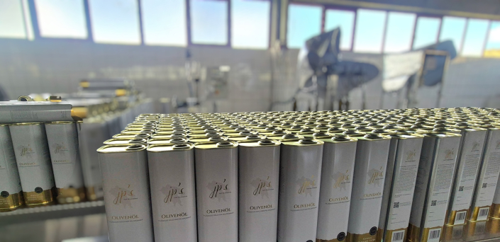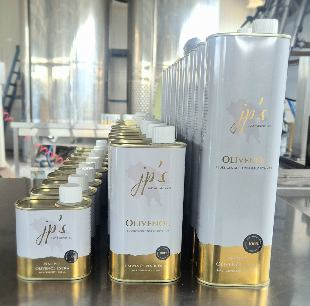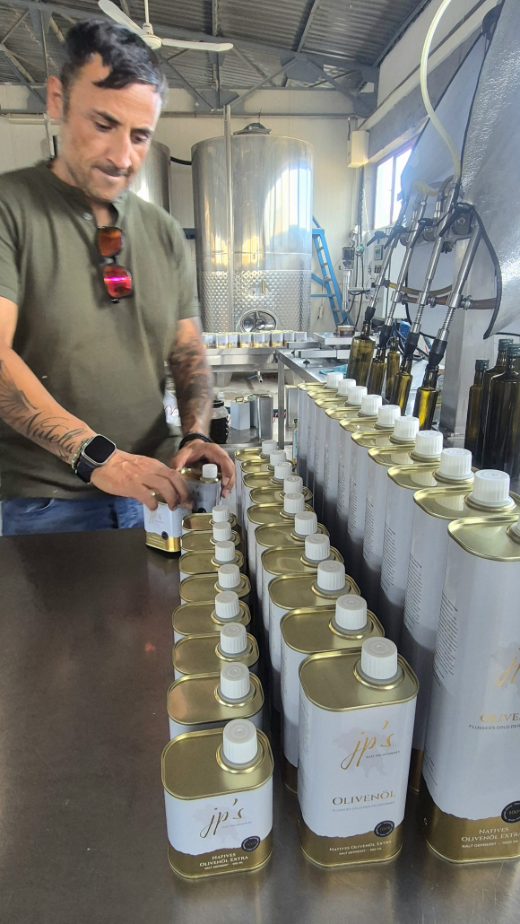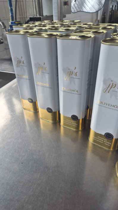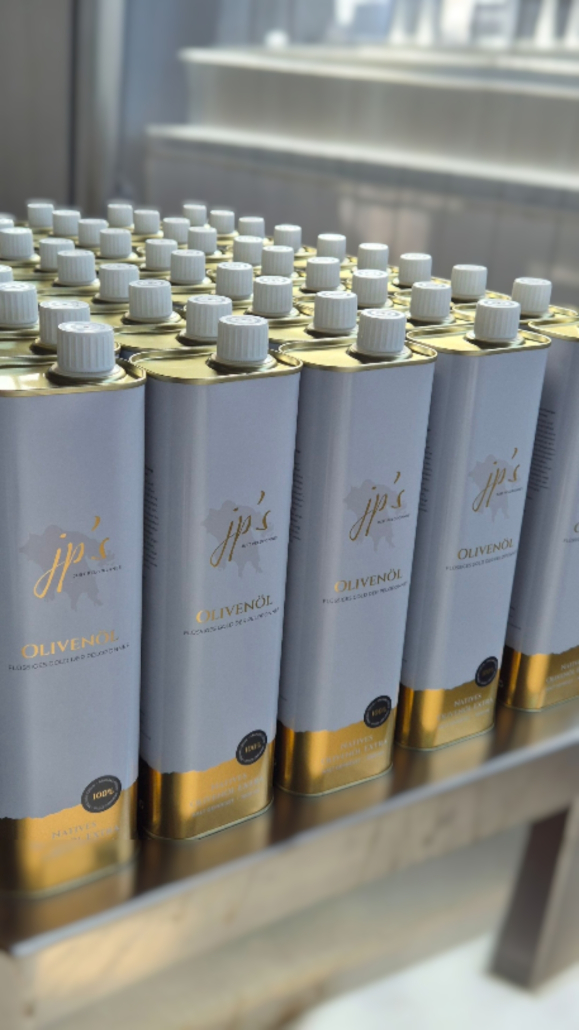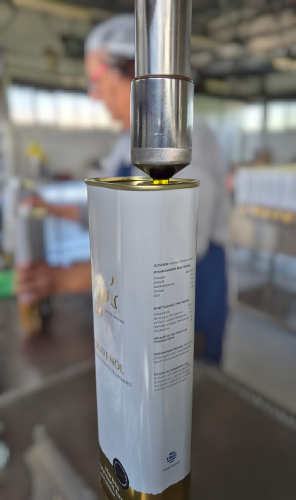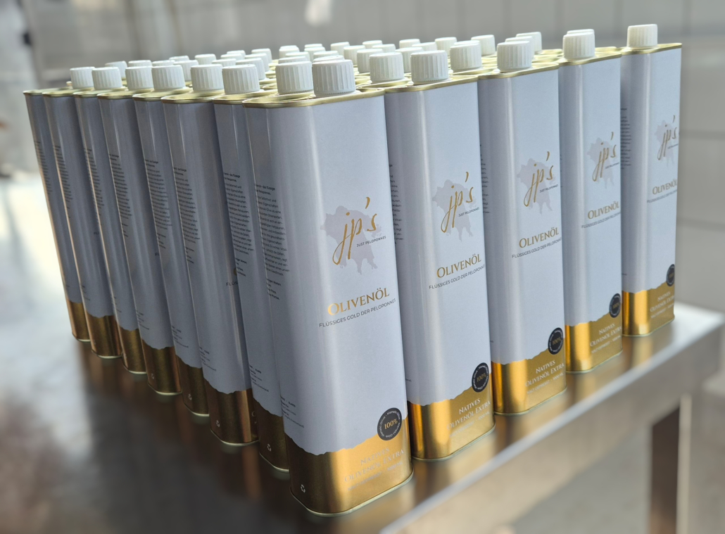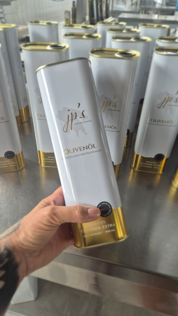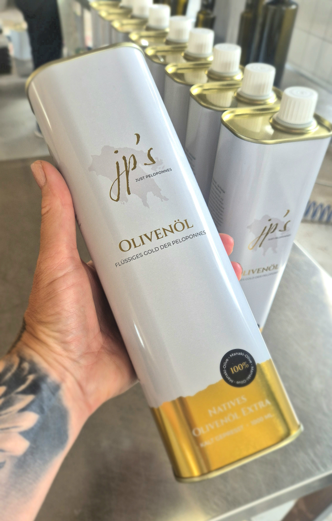 Ein Blick hinter die Kulissen von Just Peloponnes: Wie unser Olivenöl mit Sorgfalt, Reinheit und handwerklicher Präzision abgefüllt wird.